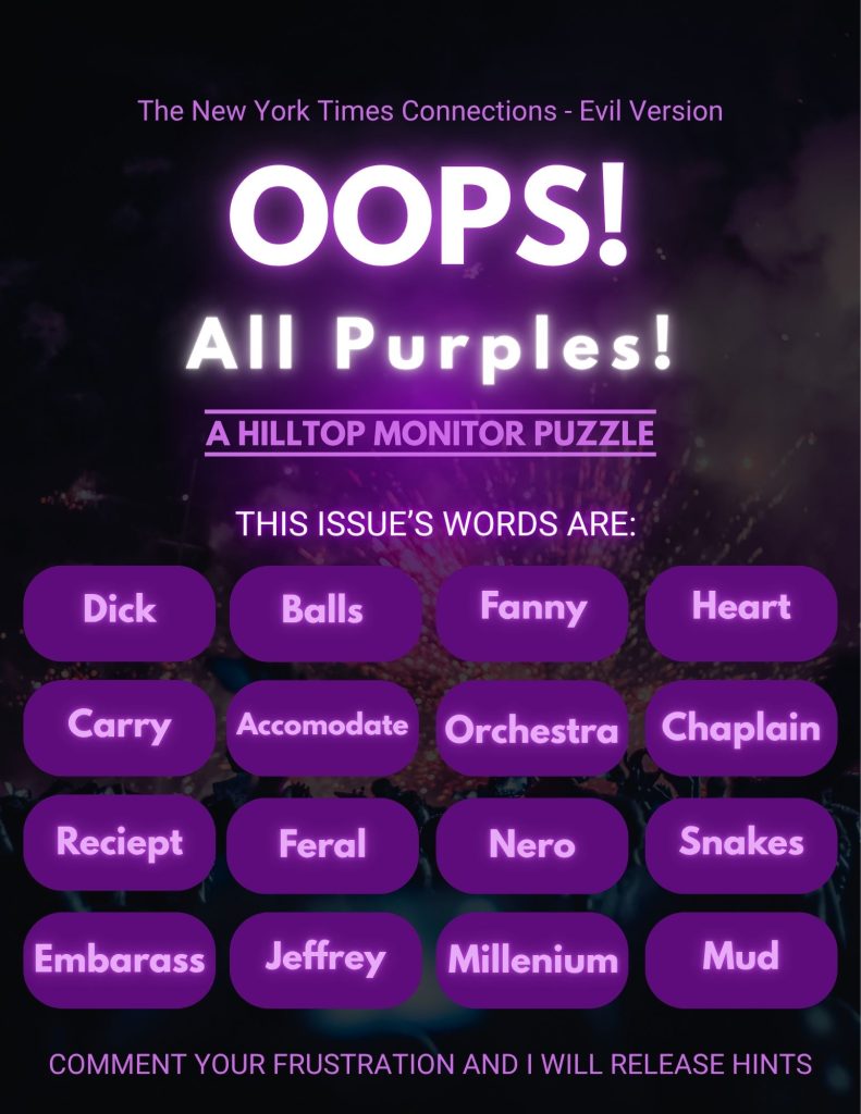 H. William Speck is pursuing studies in English Literature & Theory, Piano Performance, and Ancient Mediterranean Studies at William Jewell College. He loves thrifting, flamenco, and Monty Python’s Flying Circus, and is currently under federal investigation for turning the frogs gay.