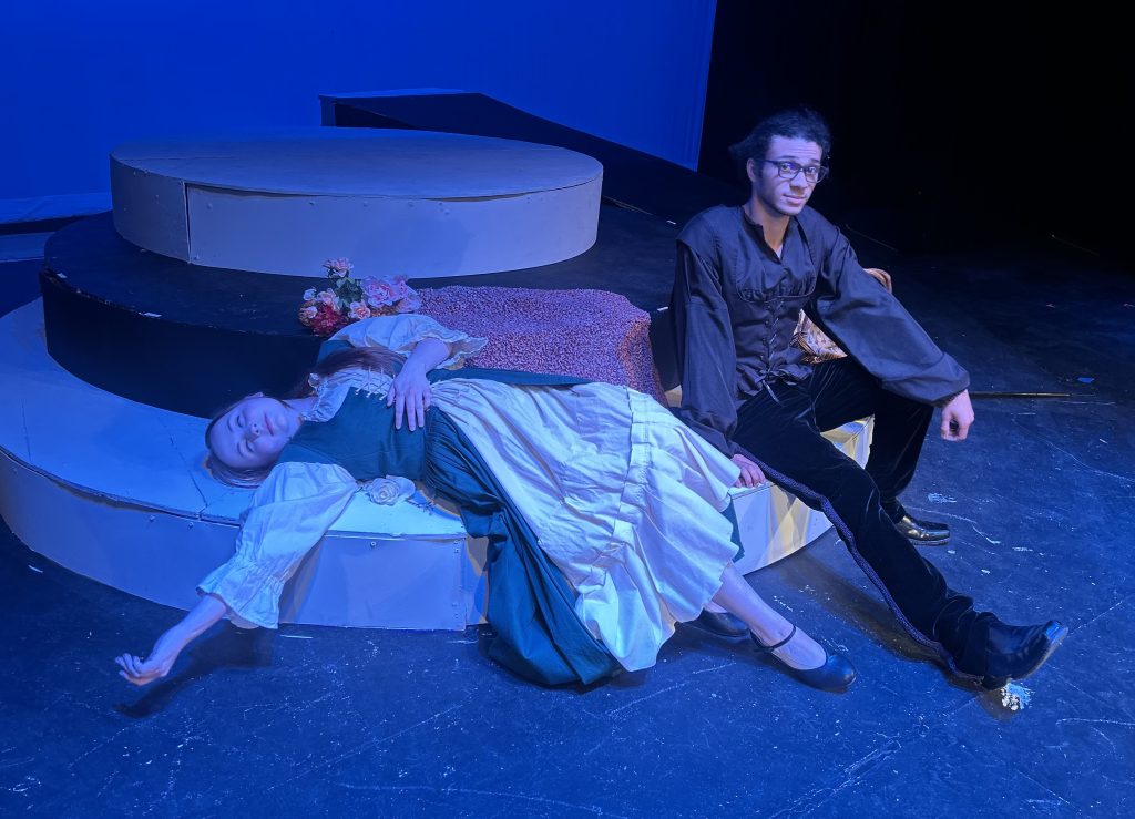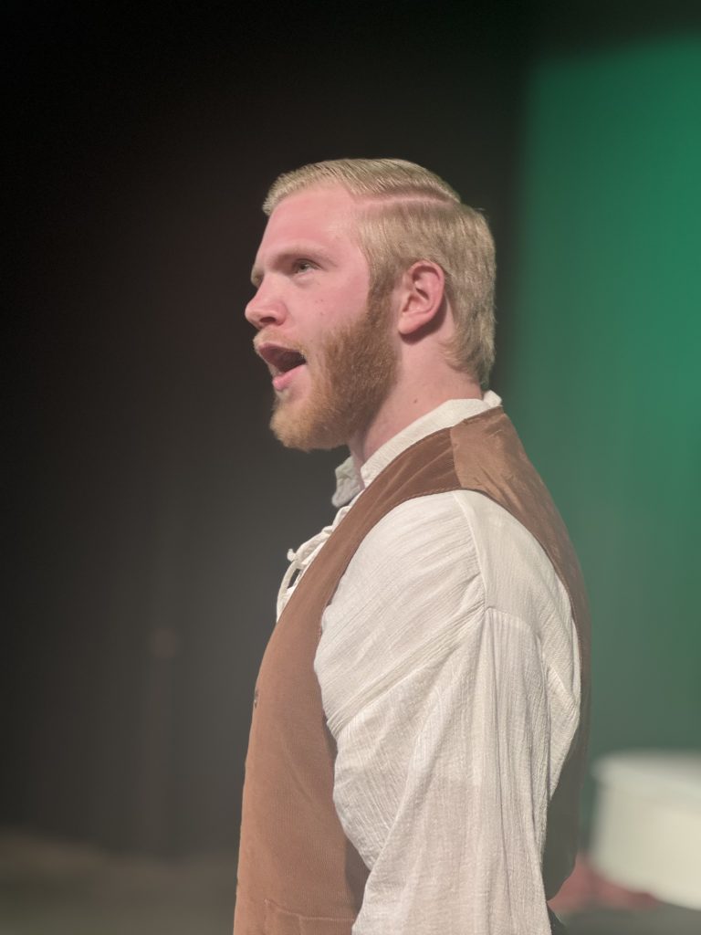 I was able to speak with Choreographer Lauren Taylor and Costume Designer Kai Robbins about their involvement and experience with putting together the opera. Lauren Taylor is a Senior majoring in Education and Psychology. Lauren choreographed several shows while in high school, but this is her first time choreographing a show in college. When asked about her favorite part of the production, Lauren said it was “making up choreography, which I’m like, ‘I don’t know if this is gonna work’. And then the first time that everyone did it together and it finally worked out I was like, ‘woah, it actually looks so good’.”